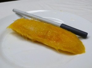 所謂人不可貌相,芒果也不能靠外觀斷定,這個意外在入口後,卻讓我驚為天人;有著土芒果的香濃氣息,但卻沒有土芒果的纖維感,甜美細緻,口感很Q,真是一個讚字了得!
