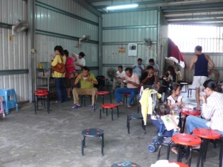 跟老闆點好,正在環顧四周時,就有好心的客人說,自己找板凳,素的,他們沒有桌子。