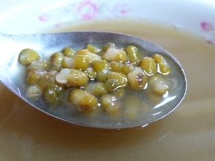 而綠豆粒比湯甜,老媽猜可能是綠豆先用電鍋蒸過。