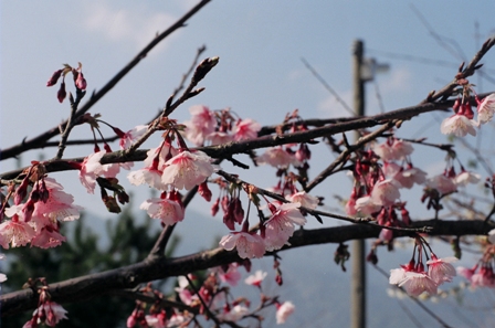 吃完飯後往上走,路邊有兩株等不及春天的櫻花,搶著跟梅花爭艷!