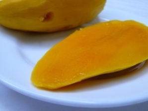 所謂人不可貌相,芒果也不能靠外觀斷定,這個意外在入口後,卻讓我驚為天人;有著土芒果的香濃氣息,但卻沒有土芒果的纖維感,甜美細緻,口感很Q,真是一個讚字了得!