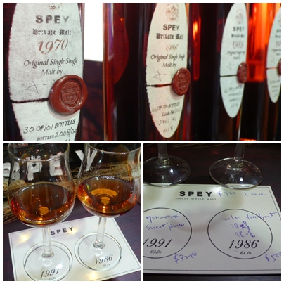 逛到Spey的攤位,或許剛好人比較少,或許業務比較熱情親切的介紹,酒咖們決定花錢嘗試一下年份的限量款。1986年的,泥煤、很嗆;1991年的,open aroma、sweet plum。我是覺得普普還好啦,但另外兩個酒咖卻很熱烈的討論兩款之間的差別。